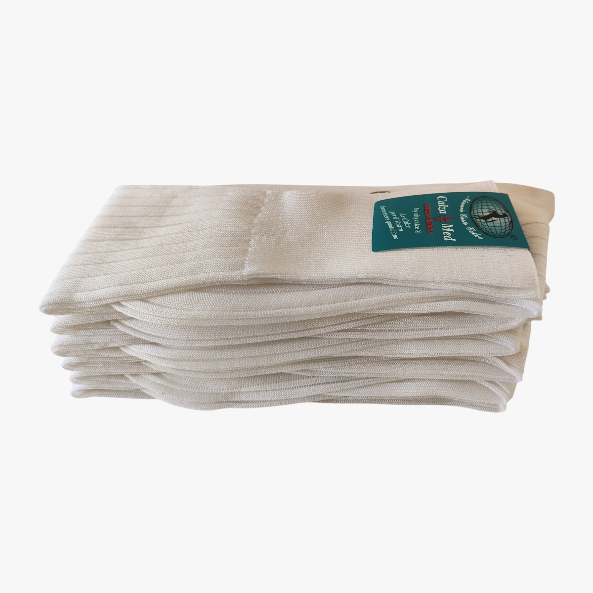Calze sanitarie create per le persone che hanno disturbi alla circolazione degli arti inferiori, infatti il polsino di questa calza aderisce senza comprimere l’arto, in quanto l’elasticità data dalla maglia stessa e non dall’elastico.